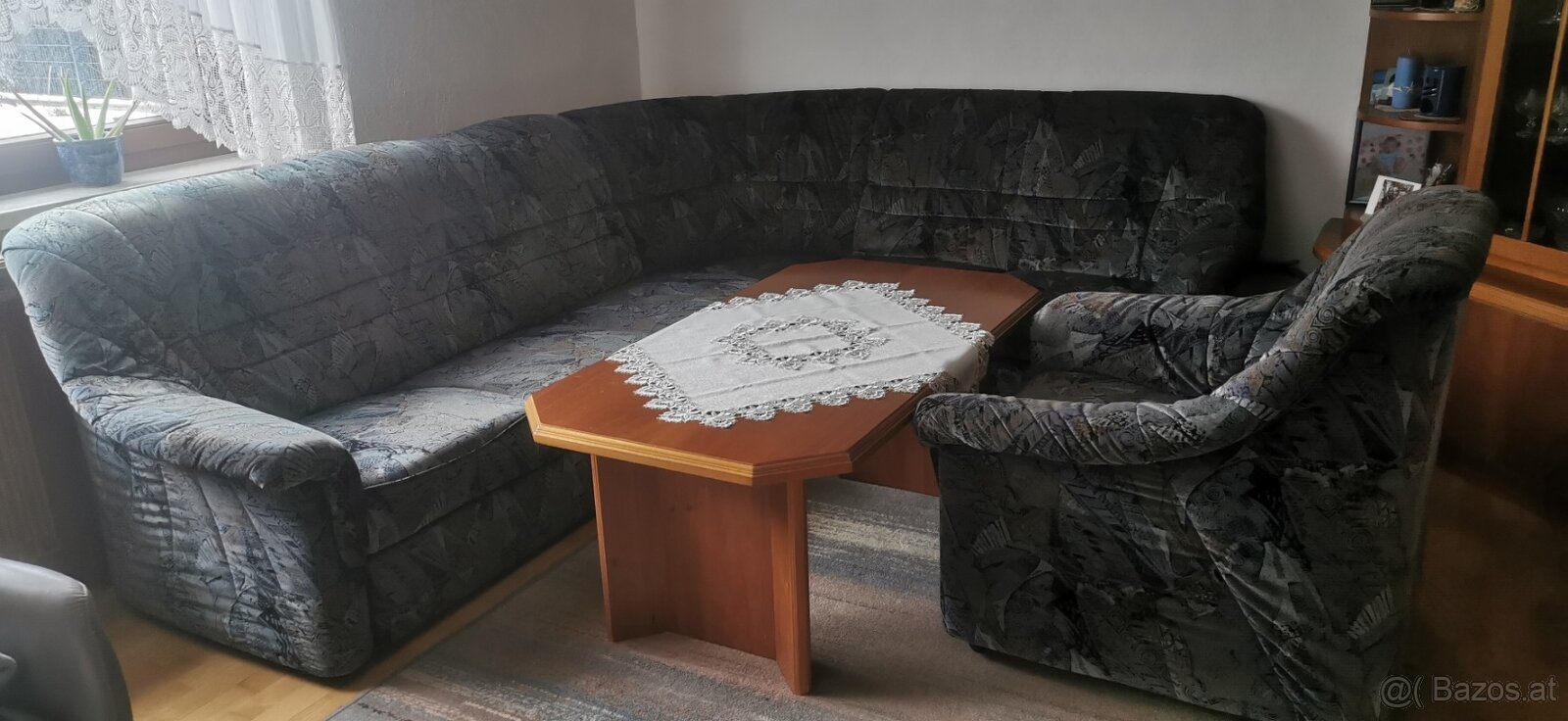 Noch sehr schöne Eckgarnitur der Marke SEDDA mit sehr guter Polsterung mit Bettfunktion u. Bettzeuglade.2.70 mal 2.25 mit Fauteuil ohne Tisch steht ab Mittwoch 11.02.2026 zum Abholen bereit.